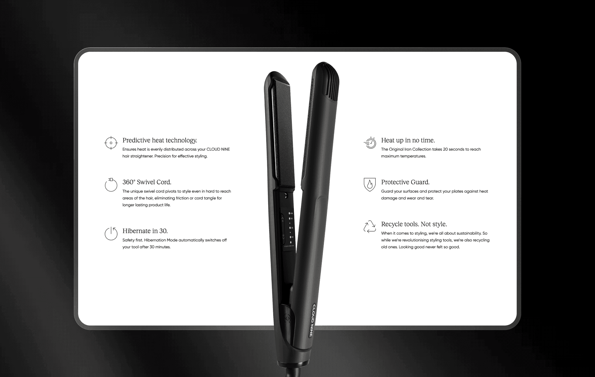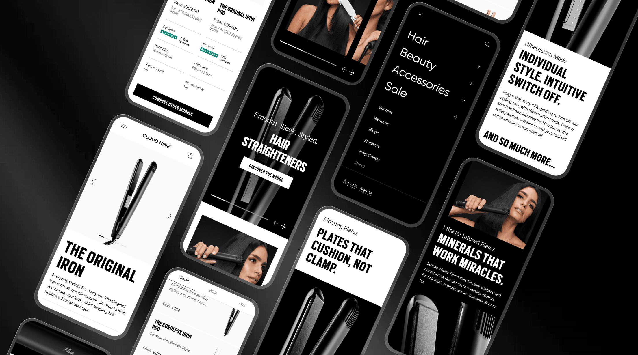 Research indicated that while Cloud Nine possessed superior technology to competitors like GHD and Dyson, their messaging and existing D2C site failed to reflect this premium positioning. Saddled with plugins and brand inconsistencies, the brand needed to elevate its story to justify higher price points and migrate to Shopify 2.0 for improved performance and scalability.